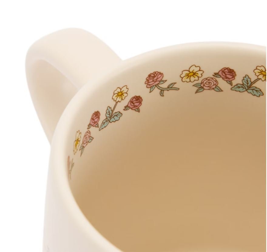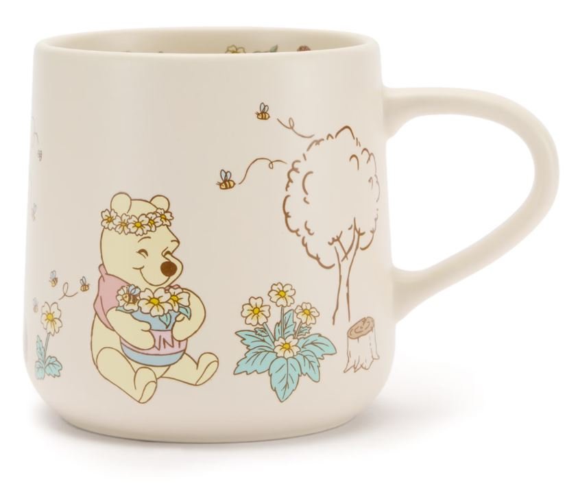 Disfruta de tus bebidas con estilo en esta taza de Winnie the Pooh y sus amigos, decorada con flores en tonos pastel y encantadoras ilustraciones de los personajes. Su diseño, con Pooh y Piglet disfrutando de un día soleado entre las flores, es perfecto para darle un toque alegre del Bosque de los Cien Acres a tus descansos para tomar un té o café.